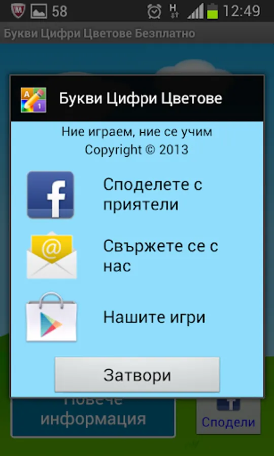 Тази безплатна версия с реклами е напълно оборудвана и включва всички български букви, цифри и цветове