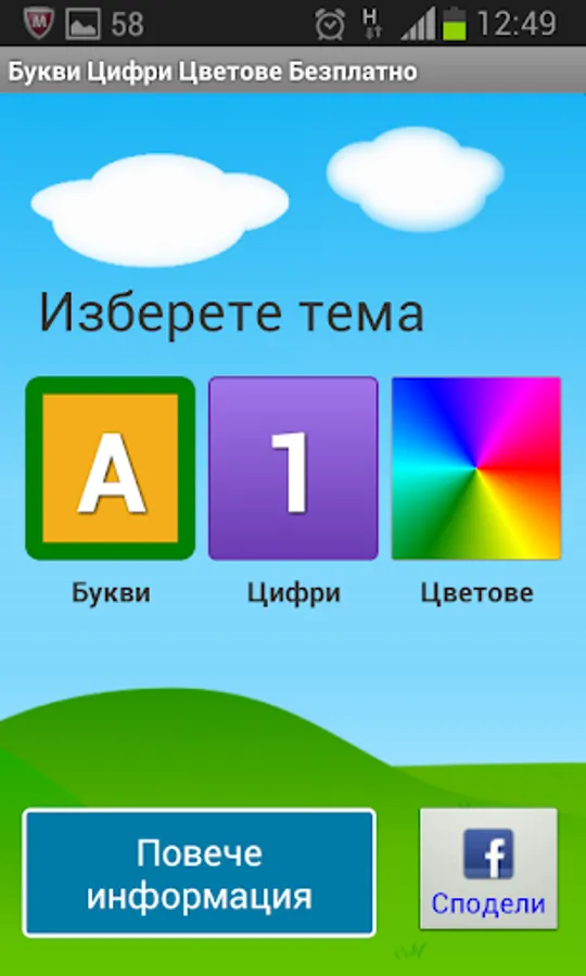 Безплатна игра за деца, която помага за разпознаване на български букви, български цифри и български цветове