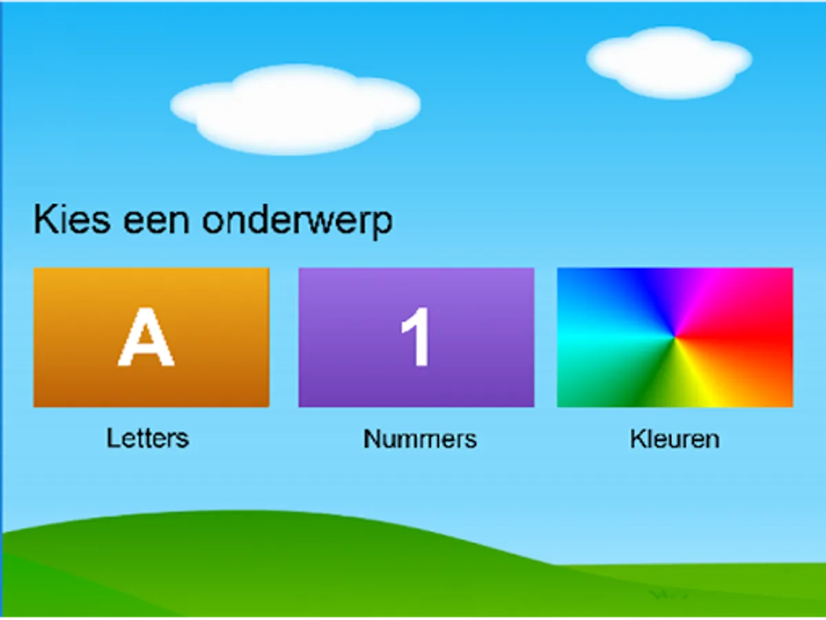 Klik eerst op het onderwerp: Nederlandse letters, Nederlandse nummers of Nederlandse kleuren
