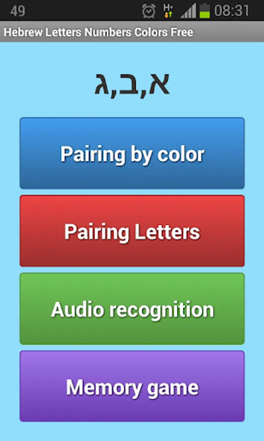 The game helps recognize alefbet Hebrew letters, numbers and colors names in Hebrew