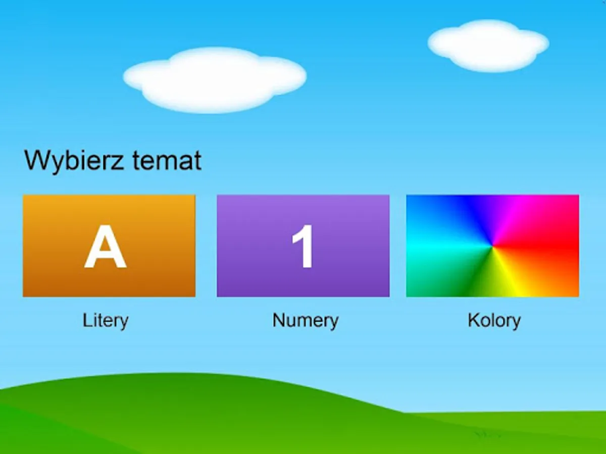 Najpierw wybierz temat: polskie litery, numery lub kolory.