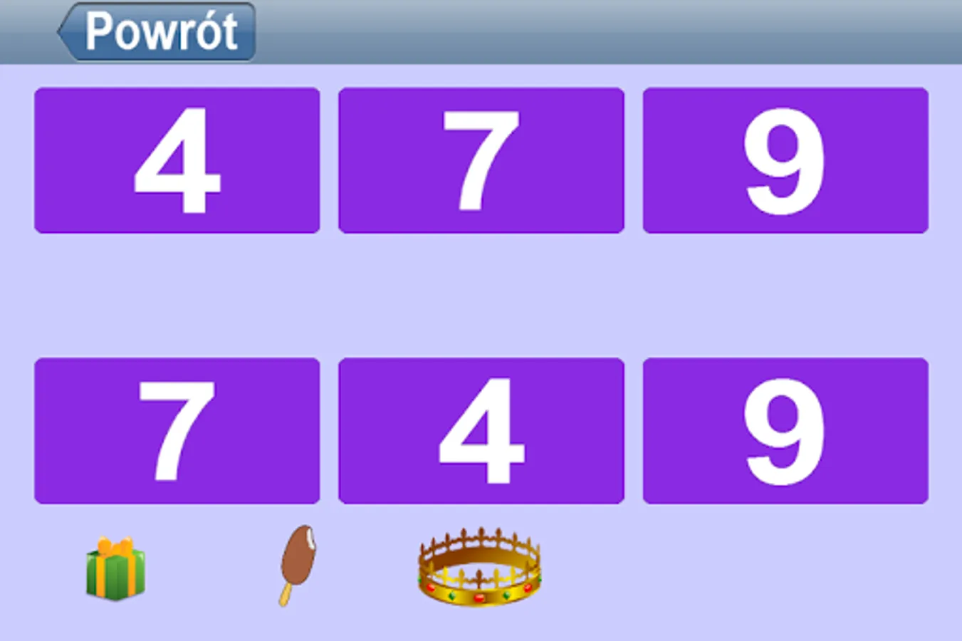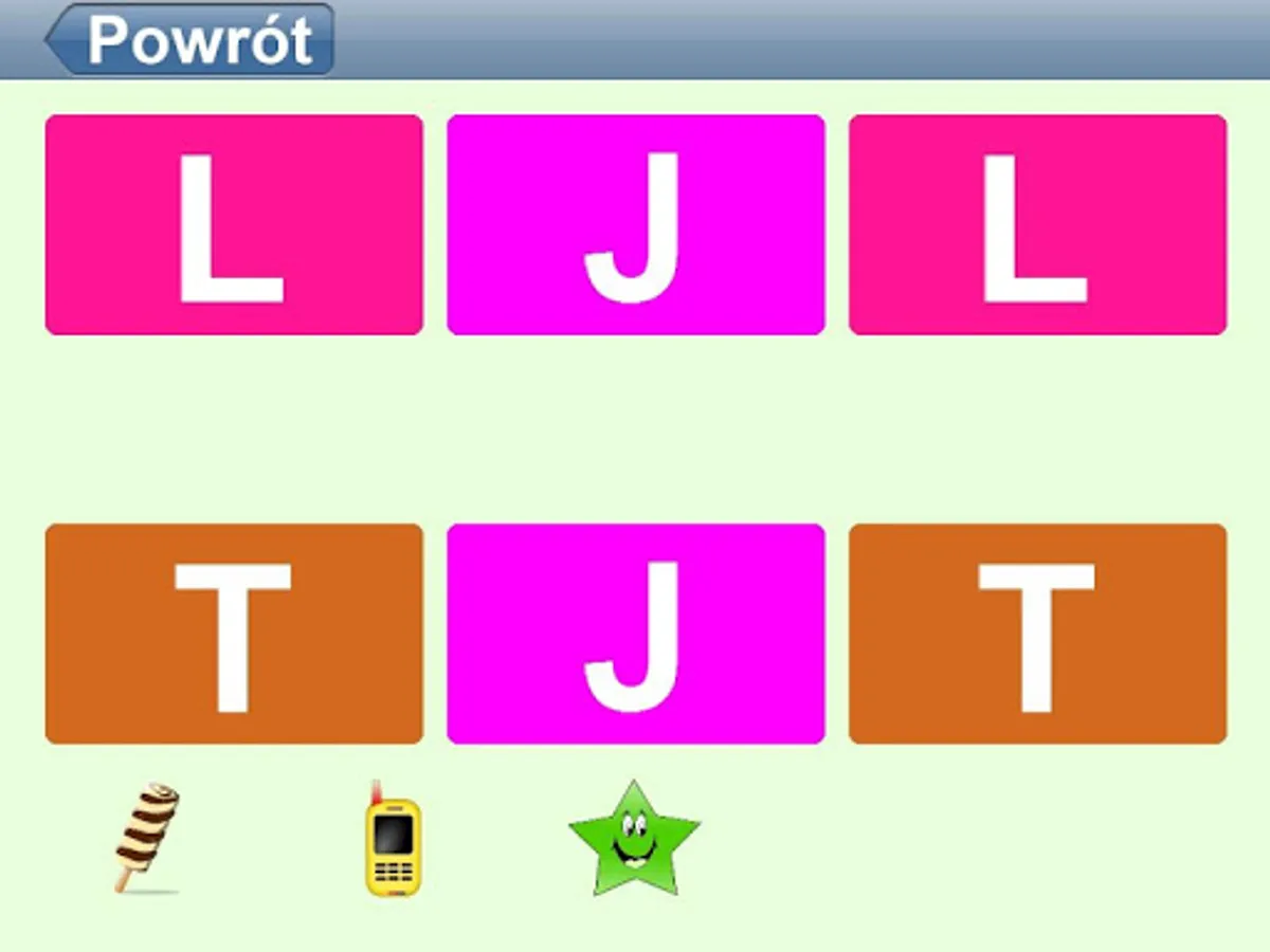 * Gra pamięciowa—doskonała gra pamięciowa z wykorzystaniem liter. Należy odnaleźć i ułożyć karty parami poprzez odkrywanie kolejnych kart (jednej na raz). Gra pomaga dzieciom z zerówki w nauce polskich liter oraz cyfr i kolorów.