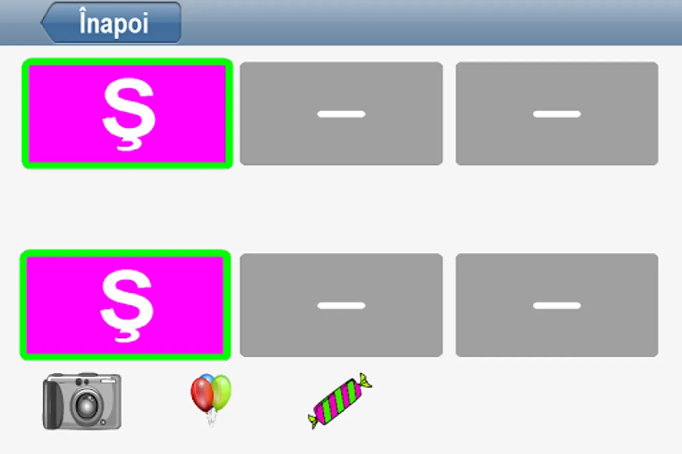 Recunoaștere audio-Copilul apasă pe litera din optiunile date.Apasă pe simbolul numelui simbolului dat