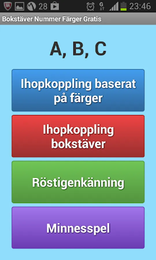 Roligt ihopkoppling av bokstäver, röstigenkänning och minnesspel.