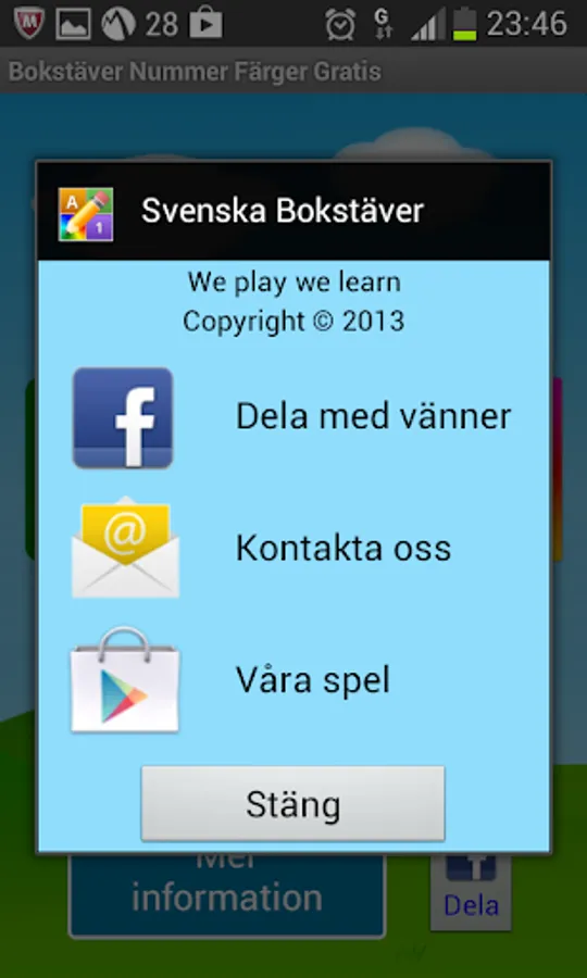 Den här versionen med annonser är fullt utrustad och inkluderar alla svenska bokstäver, nummer och färger