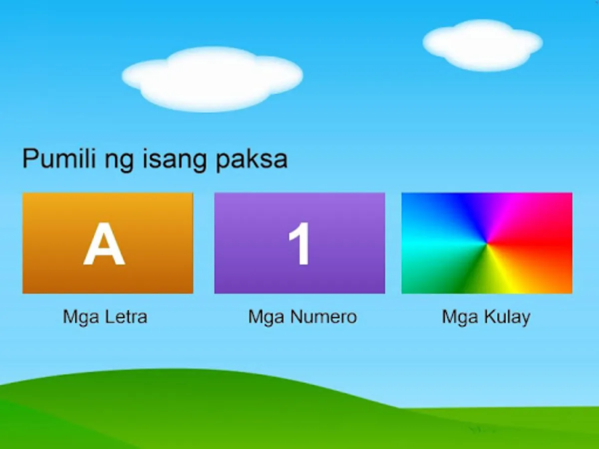 Ang larong ito ay nakakatulong sa mga batang nag-aaral upang matuto ng Tagalog na mga letra, matuto ng Tagalog na mga numero at kulay. Matapos makompleto ang nasa iskrin, lilitaw ang animasyon. Kapag nagpatuloy sa susunod na iskrin, makakatanggap tayo ng regalo. Pagkatapos ng limang regalo, makakatanggap tayo ng tropeo at lilipat sa susunod na antas. Ang susunod na antas ay may mas maraming tarheta.