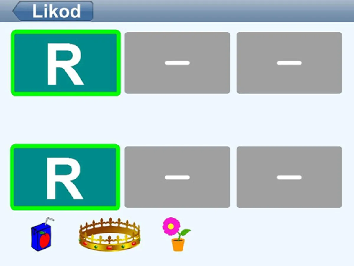 * Pangkaisipang palaro – Masayang pangkaisipang palaro na may letra. Hanapin ang pares sa pamamagitan ng paglahad ng kard nang paisa-isa.