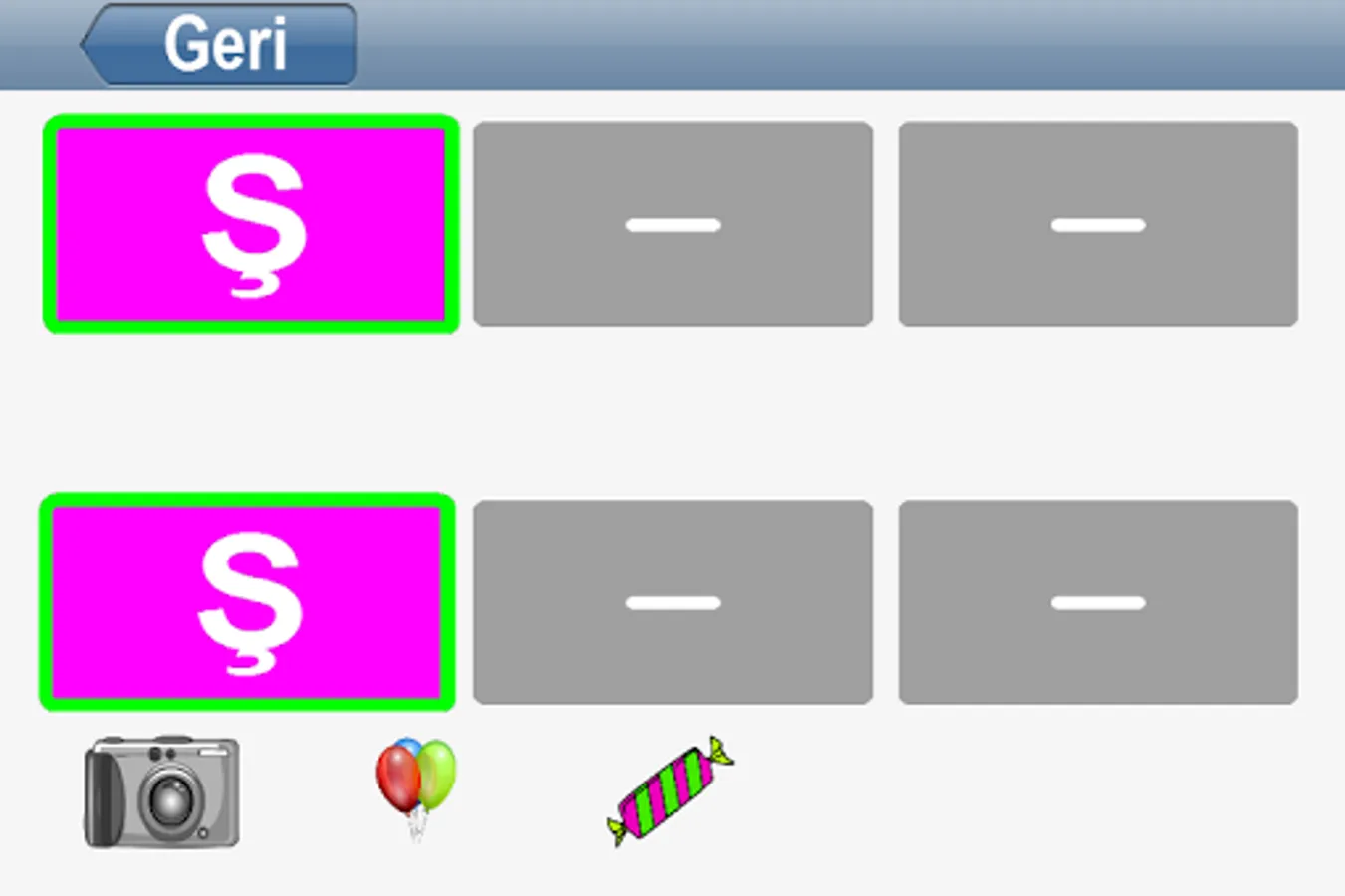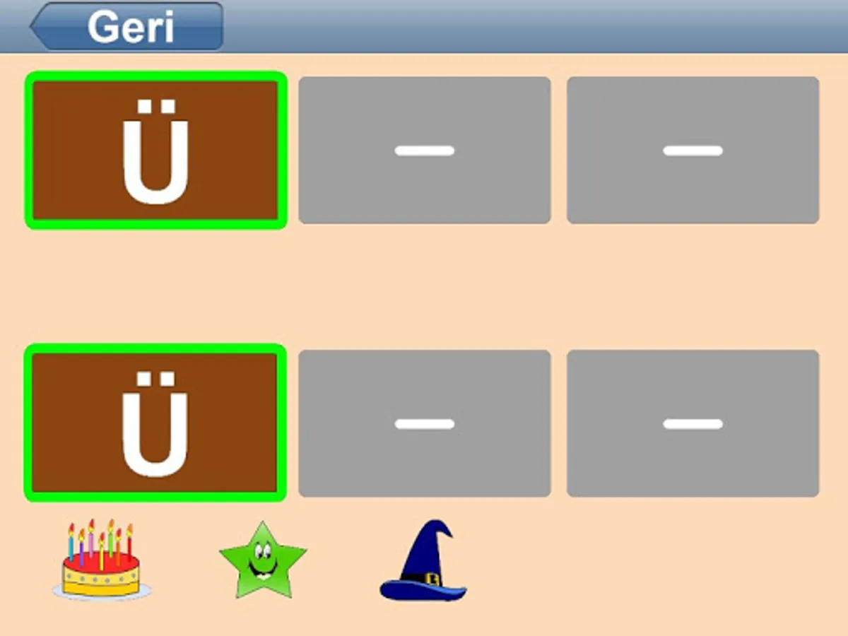 2. Aynı Renkte Eşleştirme - Daha zor bir seviyedir. Bütün kartlar aynı renktedir. Çocuk sadece harf tespiti ile eşleştirir. Kart rengi yardımı olmadan sembolleri eşleşen kartları seçin.
