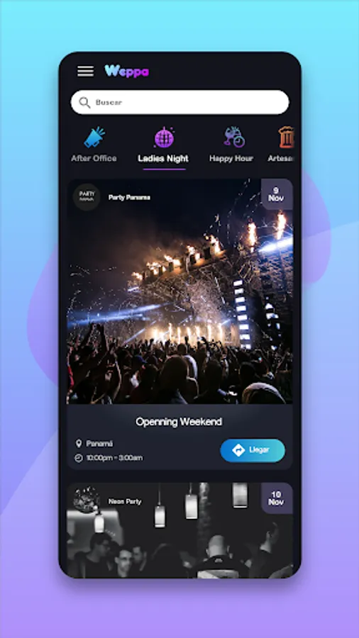 In Weppa you get what you want from nightlife thanks to the different categories and filters available,