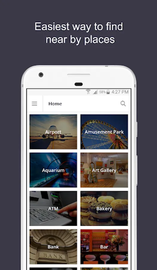 Places Around Me helps you to find Airport, ATM, Bank, Bar, Cafe, Hospital, Gas Station and total 66 types of places around you.