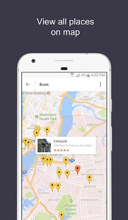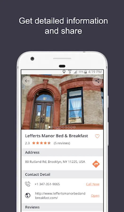 • Displays detailed information about any place. Such as, Address, Contact detail, Open Hours, etc