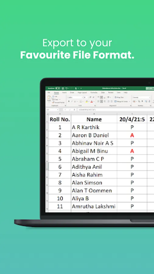 Get the whole attendance list in Excel/CSV format as per your liking.