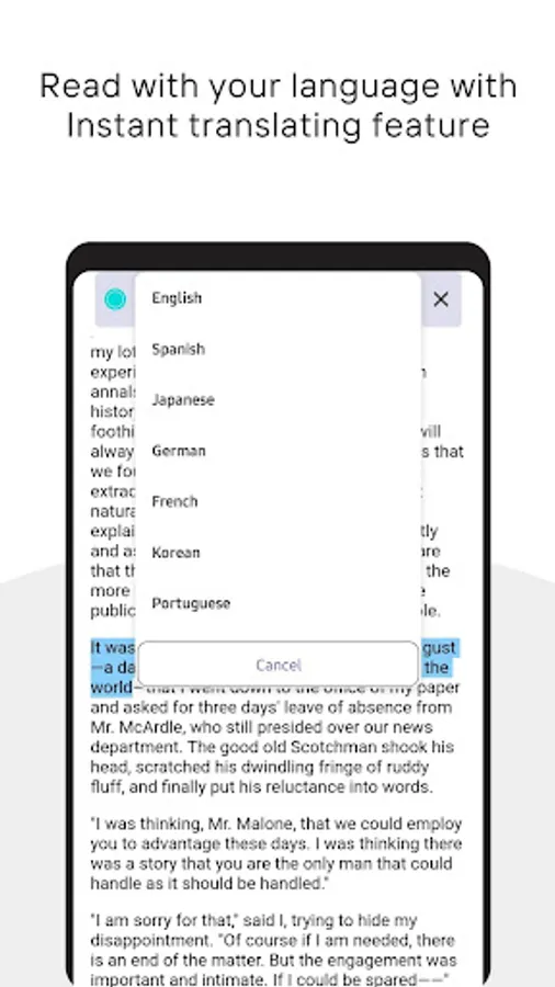 But that's not all – our app comes with a variety of powerful reading tools, such as highlighting and annotating, to help you get the most out of your reading experience. Plus, you can translate any book or passage into a language of your choice with just a few taps.