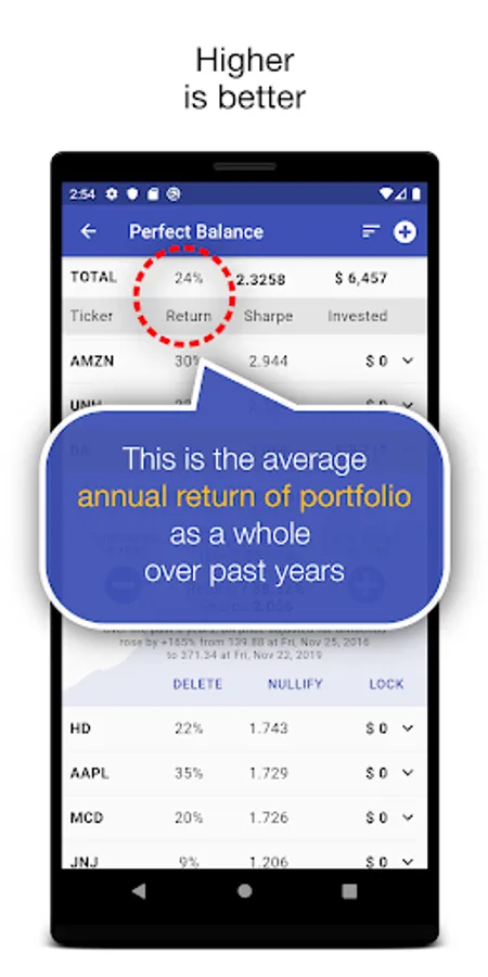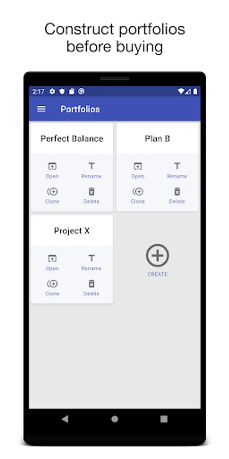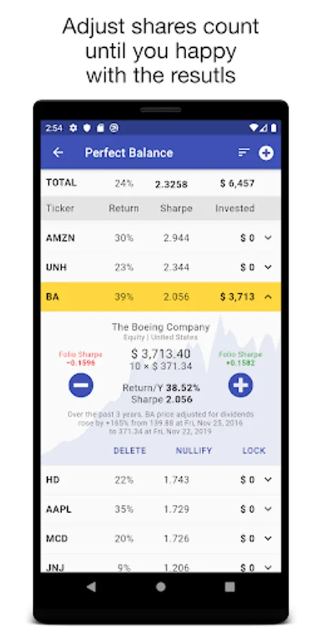 The app provides complete manual control over the portfolio contents. So the investor can make independent decisions about asset allocation, rechecking them with the displayed profitability metrics.