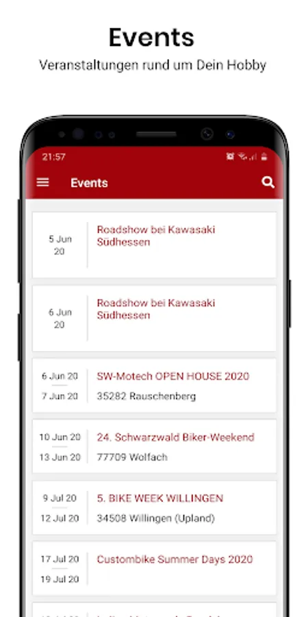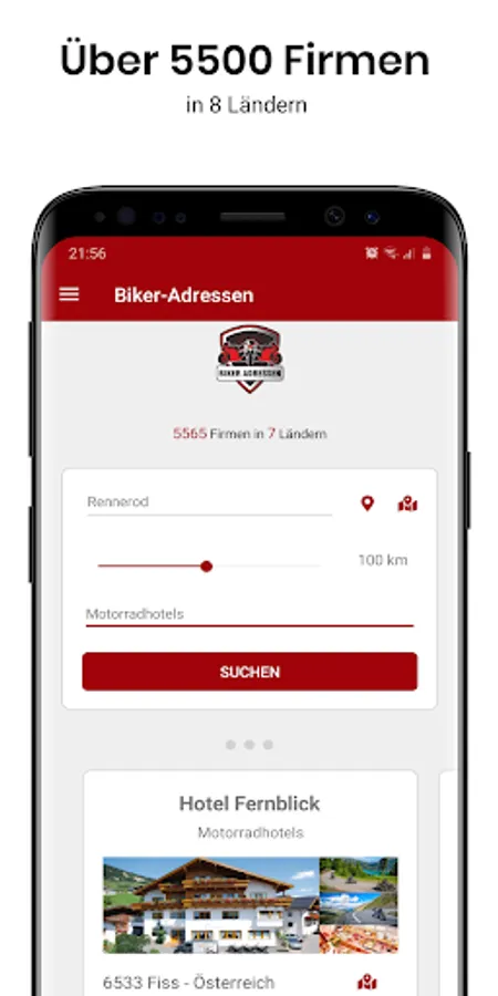 Search and find over 5500 listed companies from the motorcycle industry in your area (GPS) or by searching for a location. Choose from 20 different categories, such as motorcycle hotels, motorcycle dealers, pensions and restaurants, tyre dealers, training providers. Furthermore, you can use a direct navigation link, a link to the homepage, contact by e-mail and the direct call from the app.