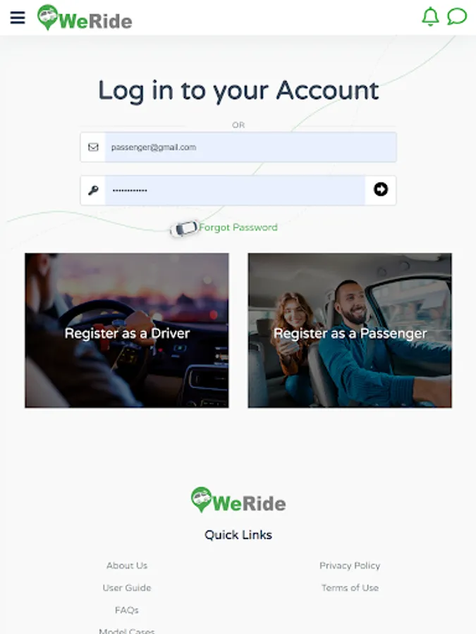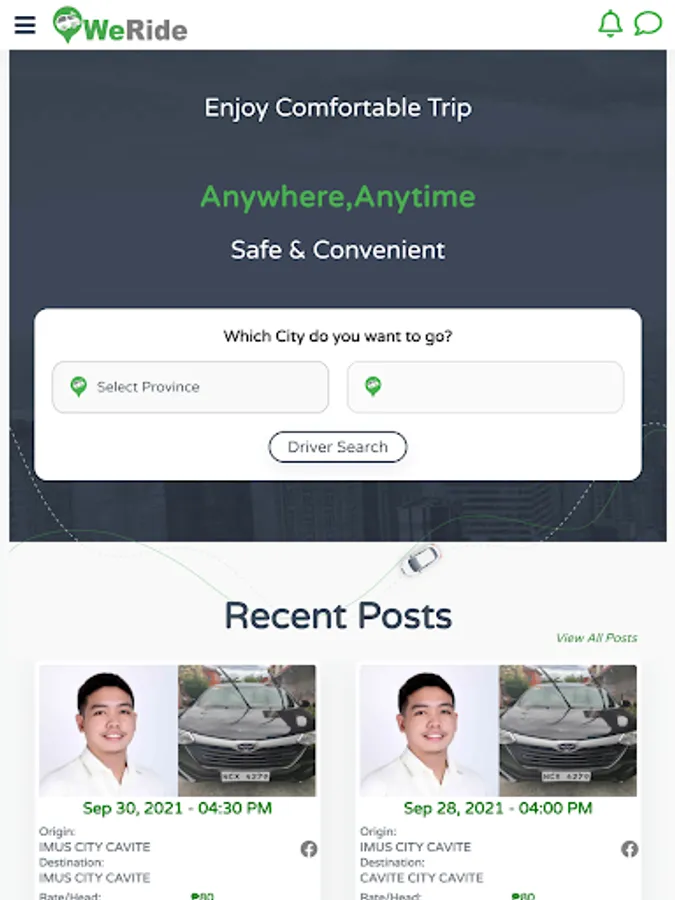 WeRide is an online long-distance car-sharing platform that connects vehicle owners with travelers and locals seeking to book vehicles for long-distance trips.