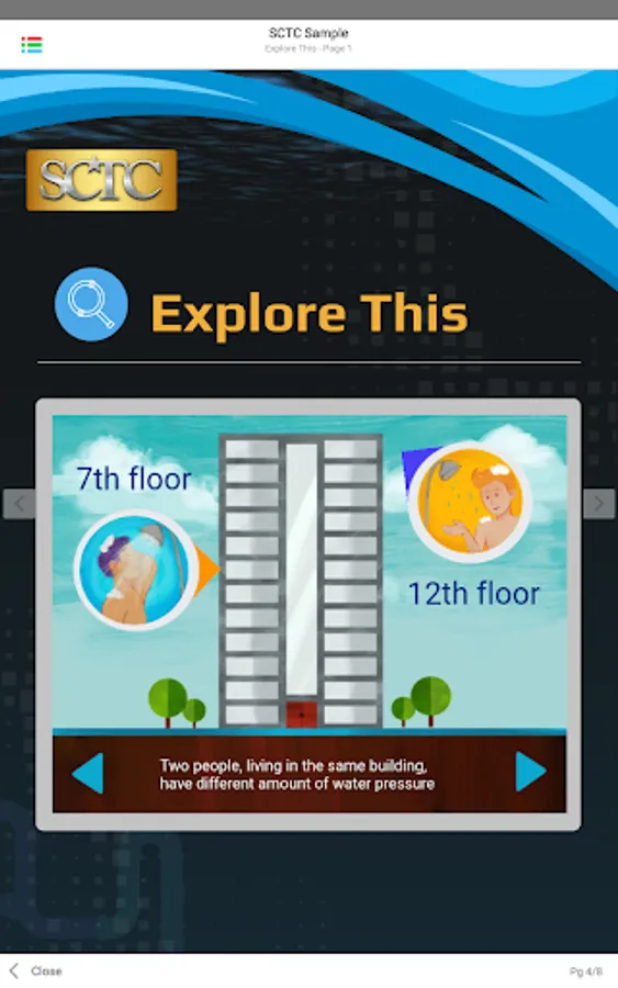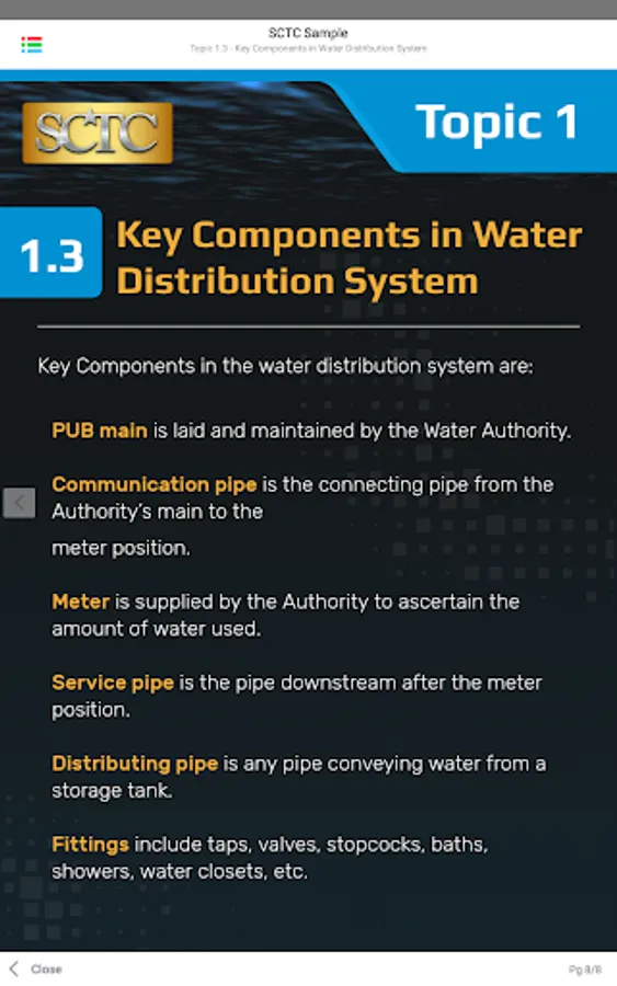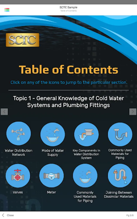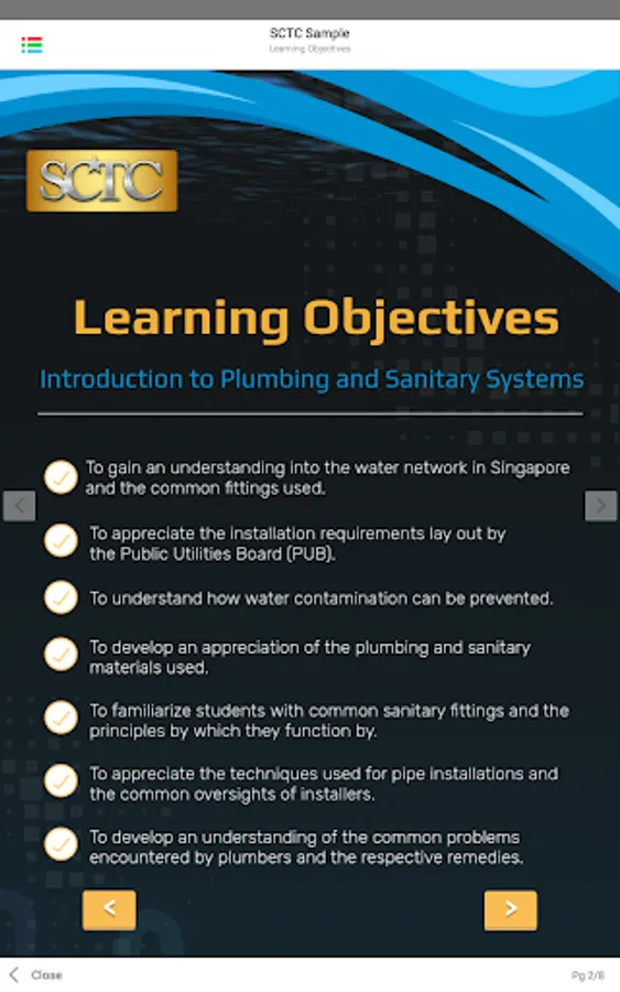 SCTC eLearning application is designed for learners who are new to the plumbing industry. This app allows them to gain knowledge about the plumbing and sanitary system in an engaging way.
