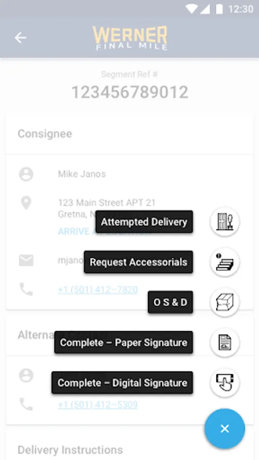 - Scan the barcode on the Bill of Lading to instantly view the Consignee's name, address and phone number, as well as the important Product information. Phone numbers are "Tap–N–Dial" so you can call ahead to ensure Consignee is present.