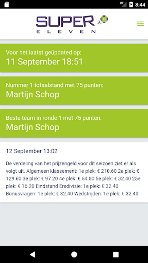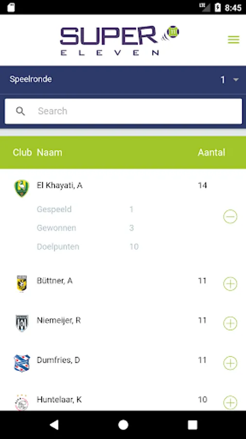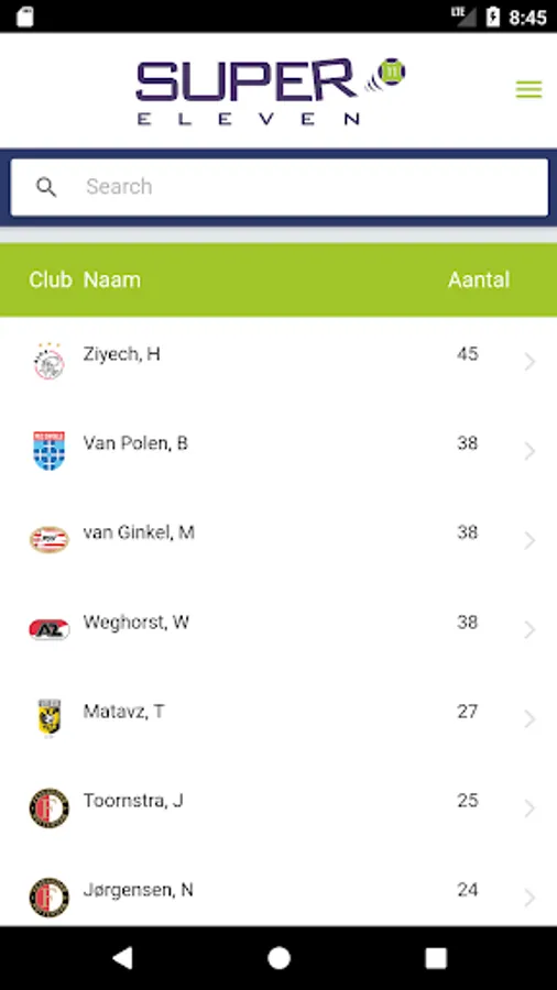 Super eleven is a dutch football game for the league. Predict the league table, pick eleven players for your own dutch league team and answer some questions for the upcoming season and score points.