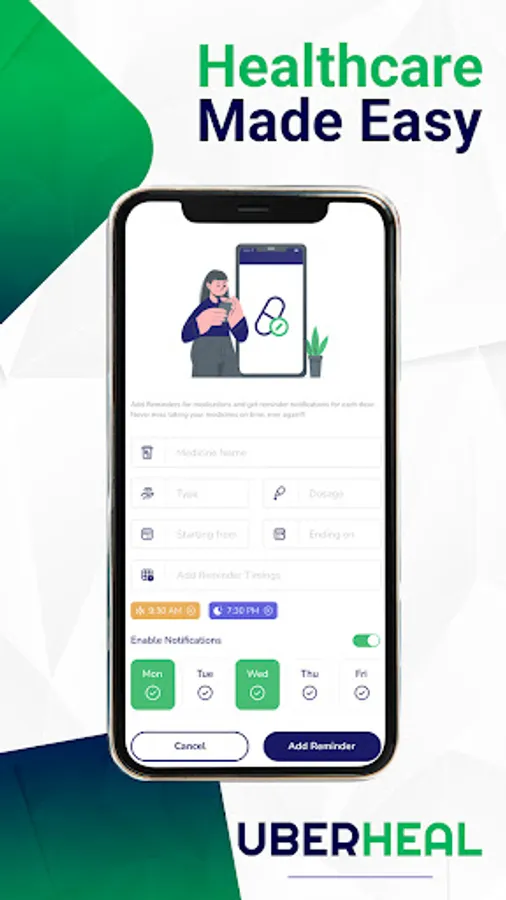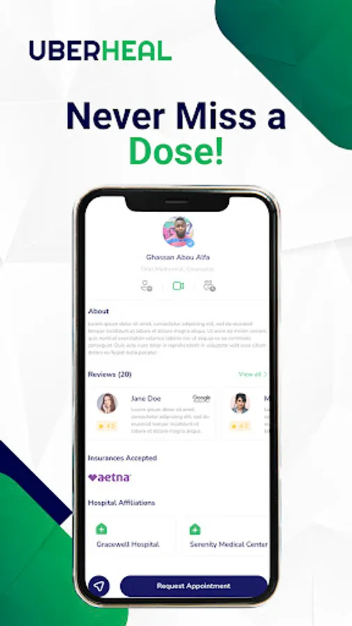 Introducing our revolutionary healthcare application that will transform the way you manage your well-being. With UBERHEAL, you can effortlessly schedule appointments with doctors, track your medications, and prioritize self-care, all at the touch of a button.