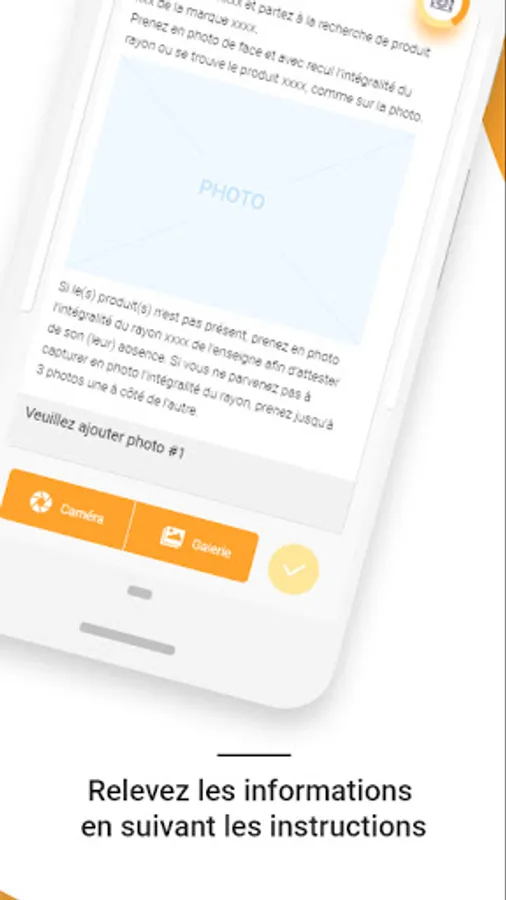 - Check the presence of a product and record its price in the store by taking a few photos and answering a few questions.