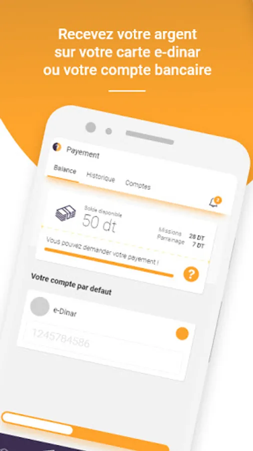 For each validated mission, you earn real money which goes directly to your weRyou account. You can transfer it to your e-dinar card at any time, or to your bank account after having accumulated a minimum of 10 dinars.
