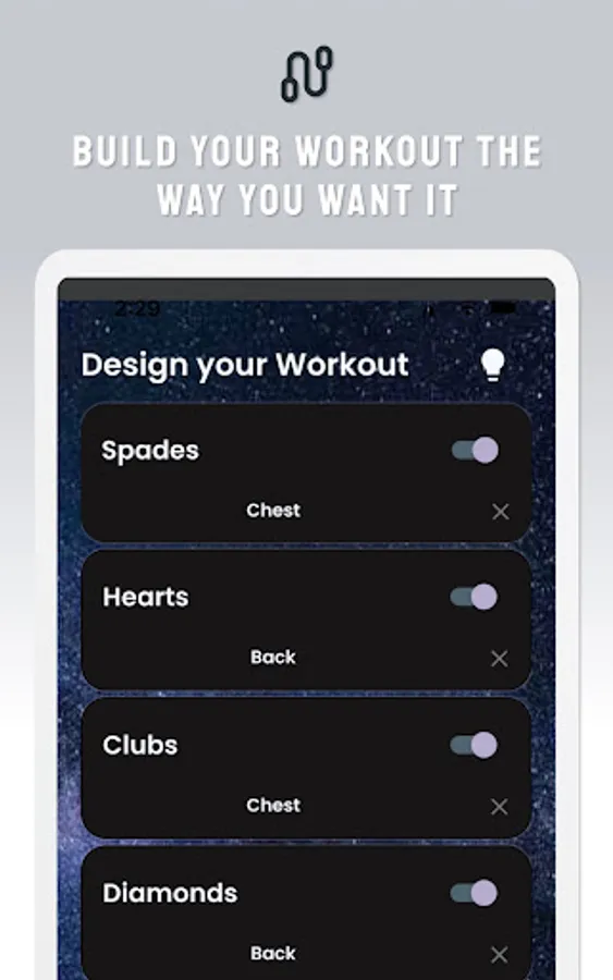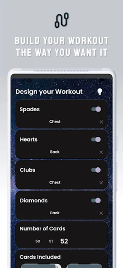 You have total control over your playing card workout. Each included suit can be a different exercise. Each royalty card can count as 10. Add jokers for challenges or breathers. Feel like doing half the deck? You can do that too. This is the best ever workout app designed for doing beginner workouts, intermediate workouts, advanced workouts, and professional workouts randomized with a deck of cards.