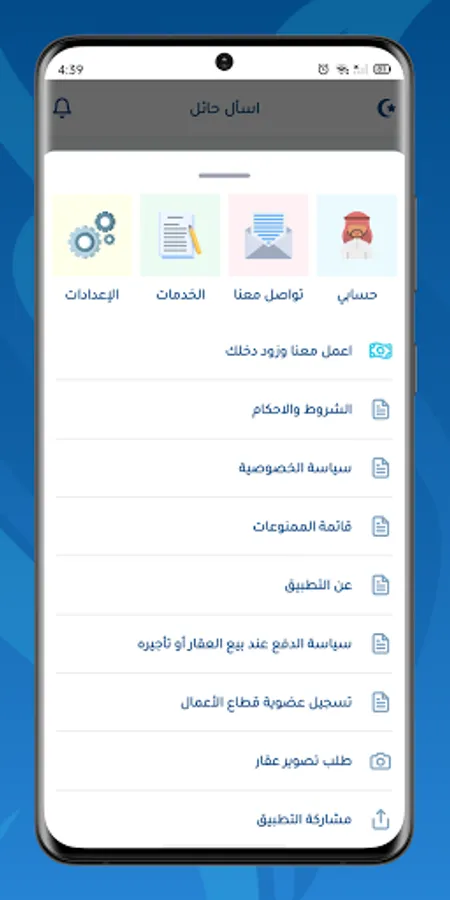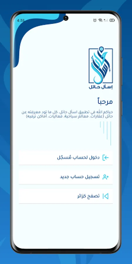 The Ask Hail application is an electronic service provided by the Ask Hail Foundation for electronic marketing and marketing to third parties, a service for the people of the Hail region and its honorable visitors to exchange experiences and experiences, browse and publish real estate advertisements and various commercial activities in a modern, attractive and appropriate display method for all. The application consists of: