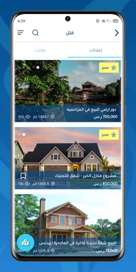 2- All that you search and ask about real estate in the Hail region and its governorates (for sale, purchase, rent and investment), you will find it in a modern and easy-to-use view that saves time, effort, money and speed of communication between the applicant and those interested in the application by displaying real estate on Google Maps and viewing the vital services that are next to the real estate from hospitals And schools and other services, as the property is displayed in pictures, videos, and a comprehensive description of it, with the ability to communicate with the owner of the property easily and easily through the application, WhatsApp or direct contact