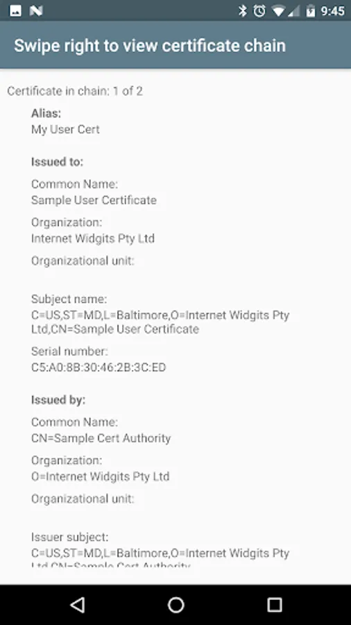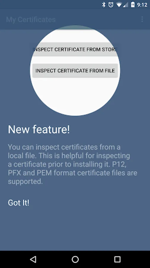 My Certificates is the easiest way to inspect user certificates on Android devices that are used for VPN and App authentication.