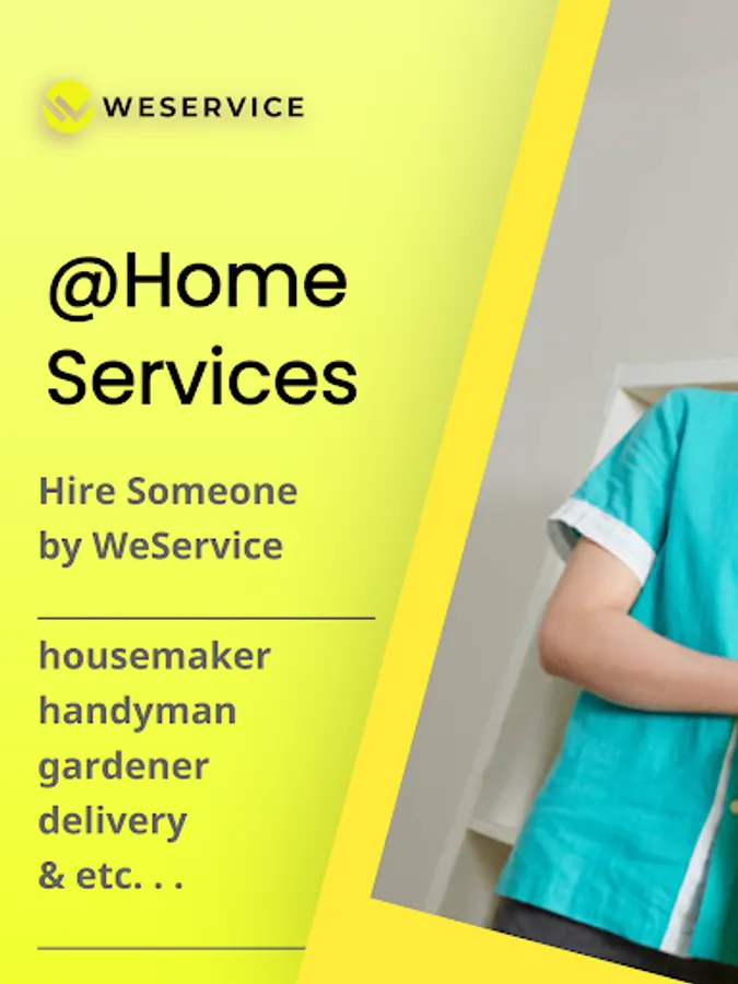 Using WeService to hire nearby services, post your job offer, find a handyman, housemaker, maid, gardener, delivery, assistant, etc. Get any services at home with ease.
