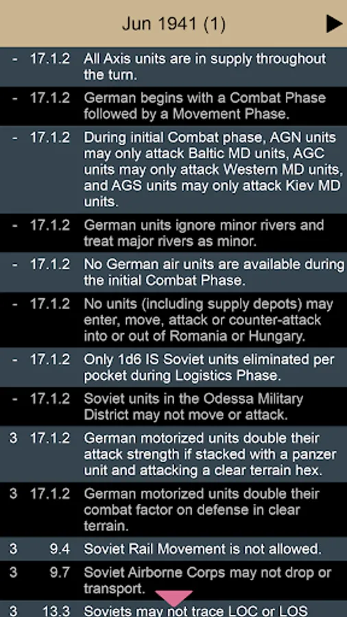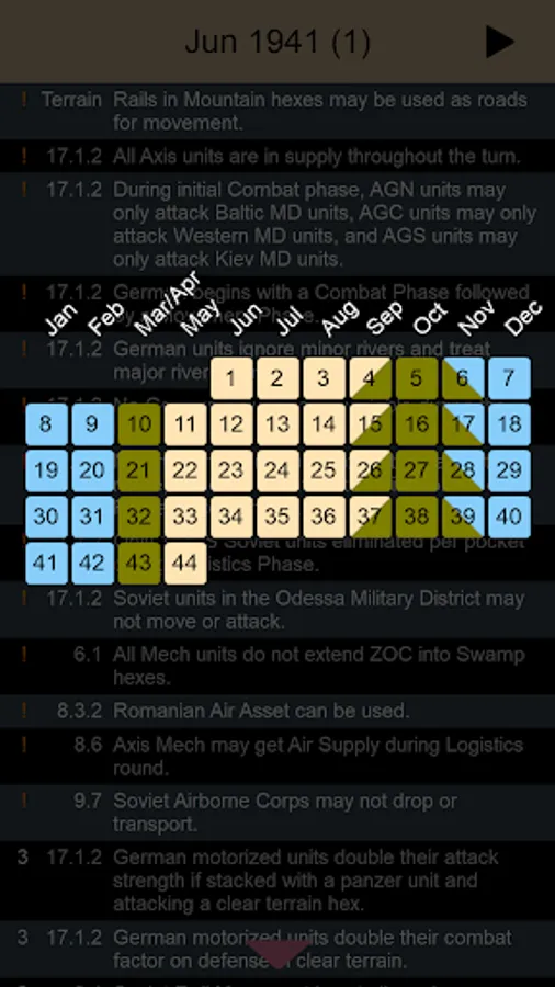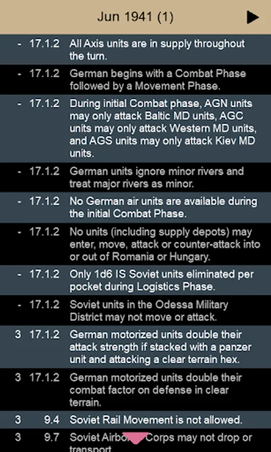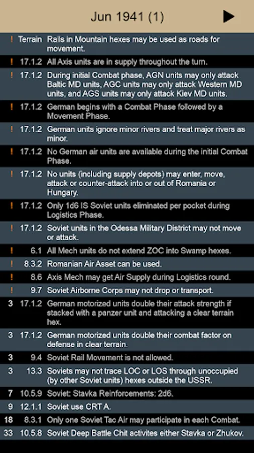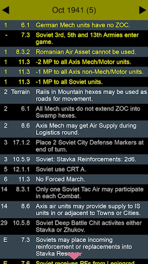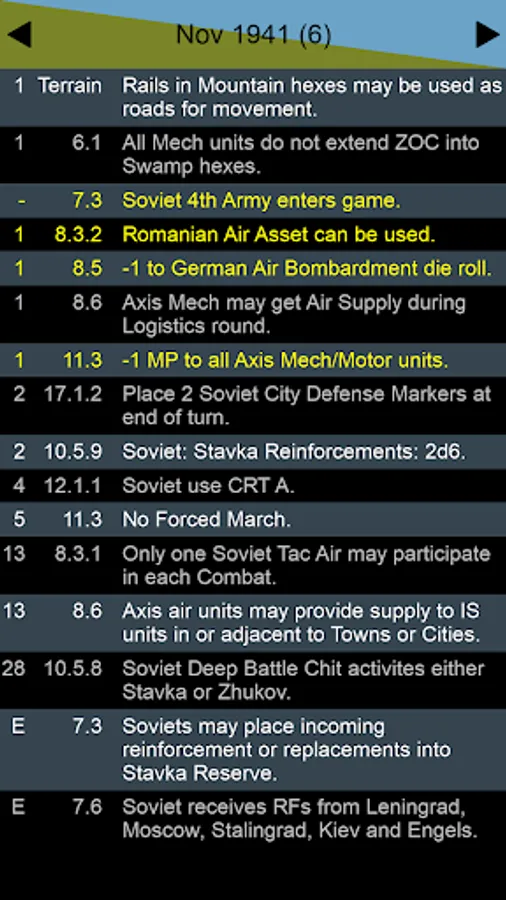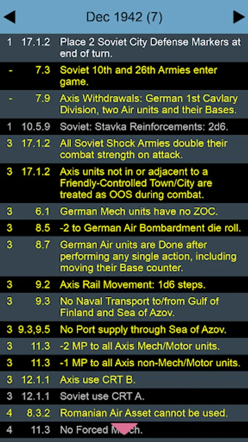 Shows quick and easy turn specific rules for The Dark Valley wargame.