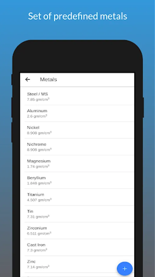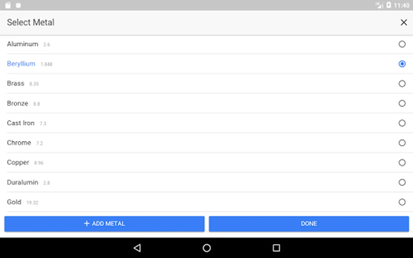 Aluminium, Brass, Bronze, Chromium, Copper, Gold, Lead, Magnesium, Mild Steel(MS), Nickel, Platinum, Silver, Teflon, Tin, Titanium and Zinc