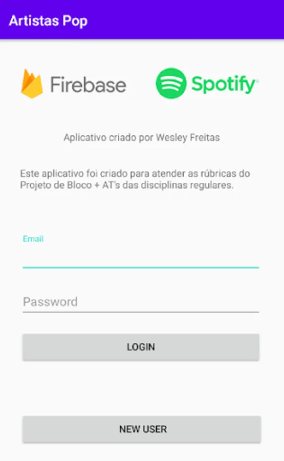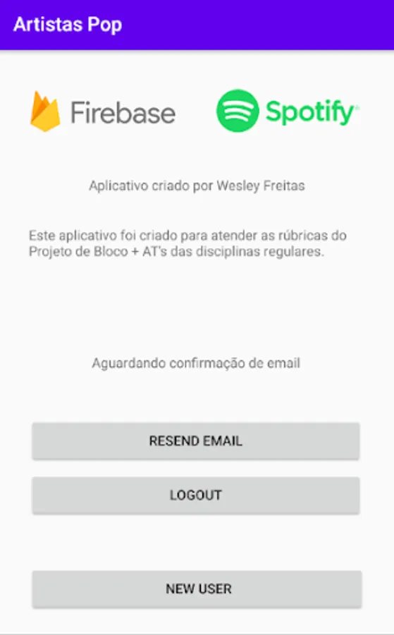 The project was made using the Firebase API for authentication with email confirmation and the Artists data is taken from the Spotify API.