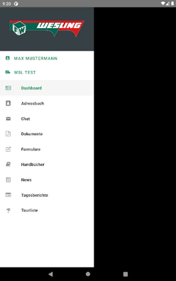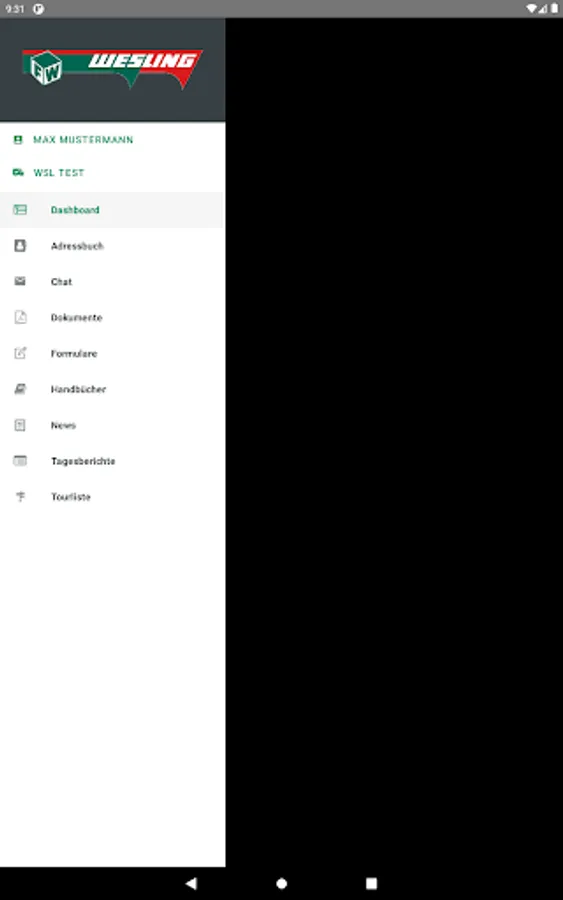 The target group is Ferdinand Wesling GmbH & Co. KG's own workforce. The creation of an account is only possible by receiving a separate log-in code from the backend of Ferdinand Wesling GmbH & Co, then downloading the app and logging in securely. In the second phase, the app should also be available for partners in the group of companies.