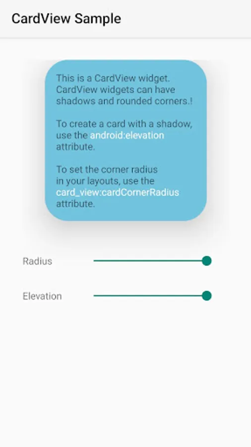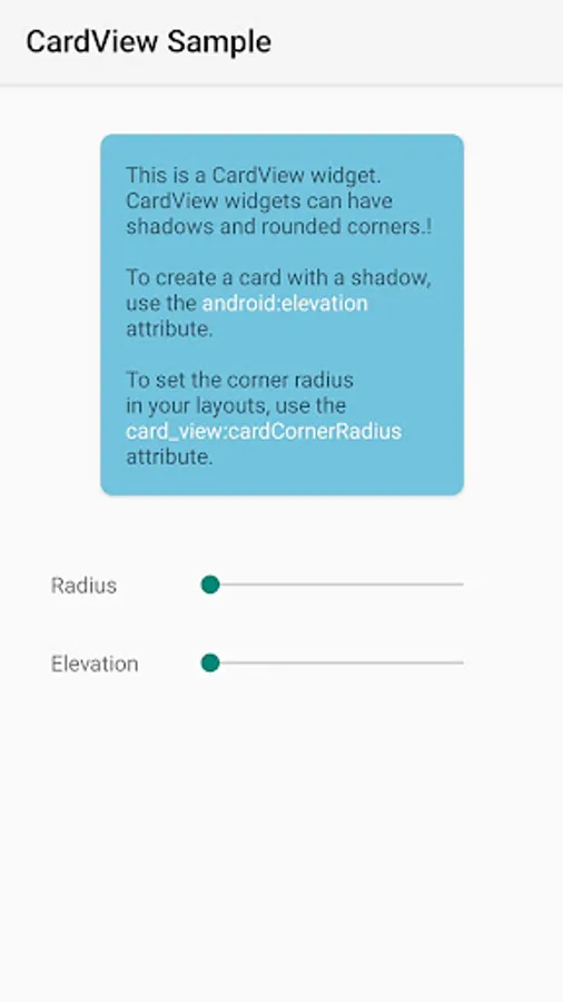 Android 5.0에서 지원 라이브러리에 도입된 CardView를 사용하는 방법을 보여 줍니다.