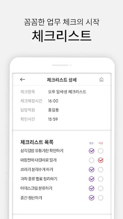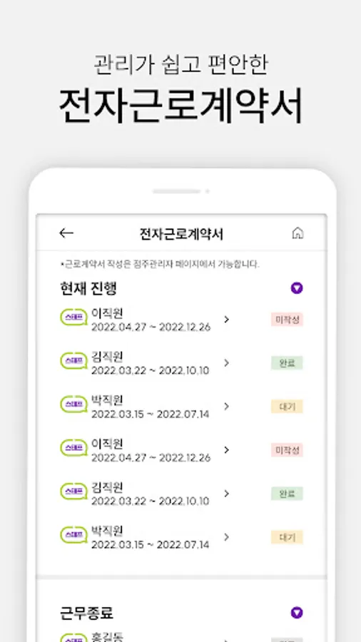 - If you register your store, you can check the work schedule and work status of employees through the app.