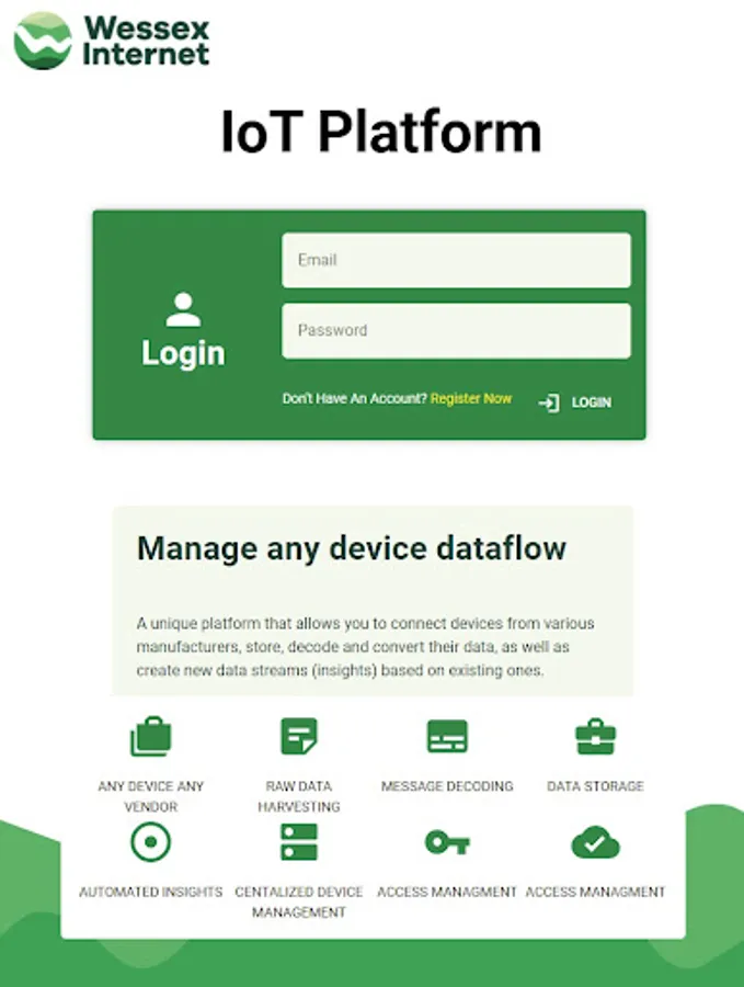 A unique platform that allows you to connect devices from various manufacturers (Vodafone, NB-IoT), store, decode and convert their data, as well as create new data streams (insights) based on existing ones.