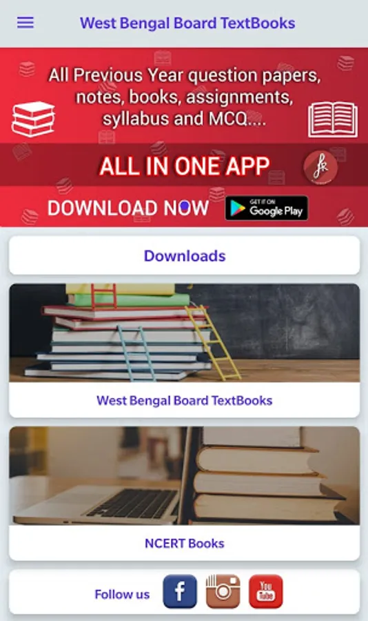 West Bengal Board textbooks & Solutions is a free app where you can find books of both medium (English as well as Bengali) and their solutions. Students can also downloads the books and papers or read offline from the app.