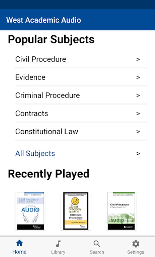 The West Academic Audio app provides offline access to audio content and audio lectures available through your subscription to West Academic Study Aids. Sign in to the app using your West Academic username and password.