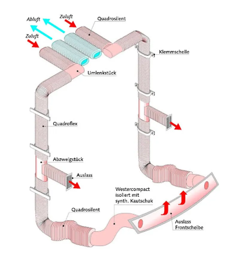 In vehicles people do not really want to hear or feel the inflowing fresh air. Vehicles which have Westaflex products installed fulfil this high standard. Westaflex ventilation systems and tubes operate nearly invisibly in ACs, protecting damageable components or are in use as mufflers. A cosy climate in vehicles heightens the concentration of the driver and lowers the risk of accident. With the experience of decades in this field, our company satisfies even the highest of customer needs and requirements.