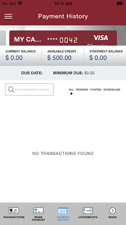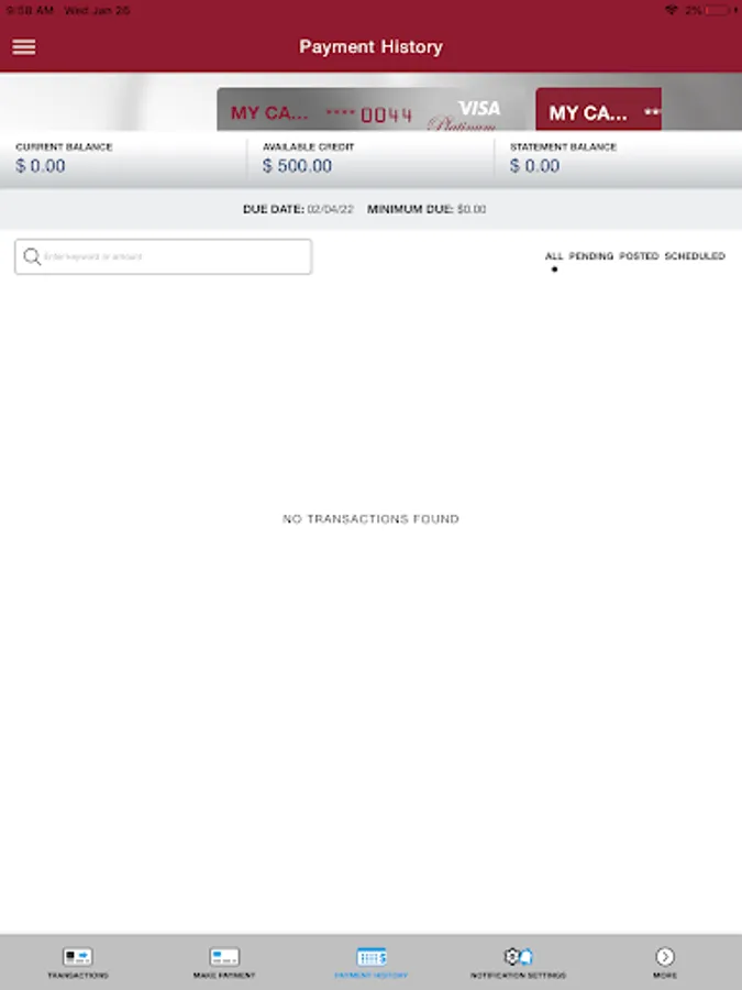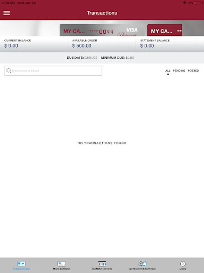 • View recent and pending transactions.