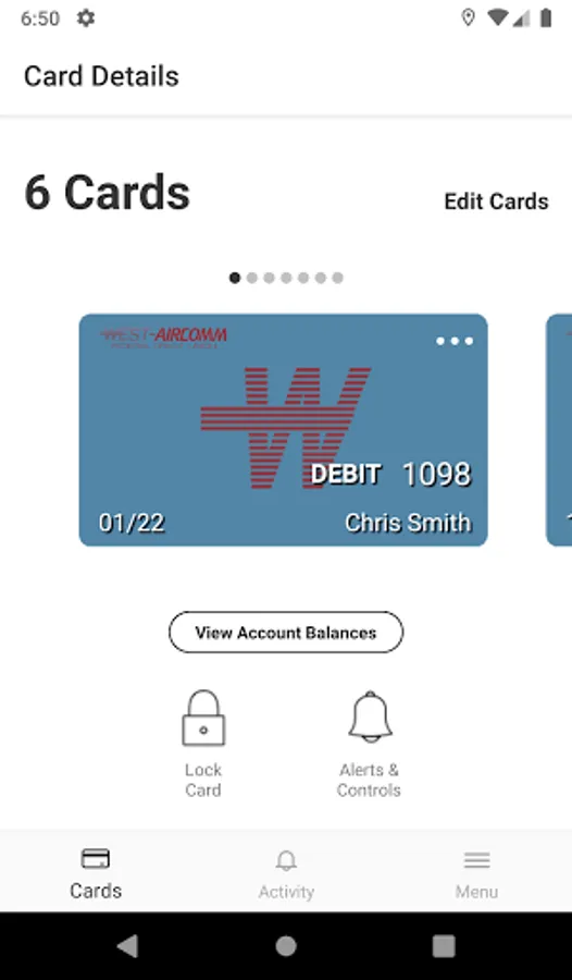 West-Aircomm CardGuard protects your debit cards by sending transaction alerts and enabling you to define when, where and how your cards are used. Download to your smartphone, then set your preferences to monitor and manage your cards.