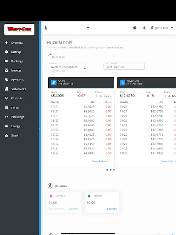 West Con Grower 360 is a convenient tool allowing you to view the status and history of your account! This app provides quick access to all the information you frequently have questions about such as invoices, payments, and even allows you to submit a payment online!