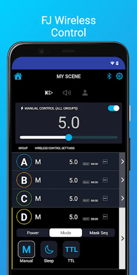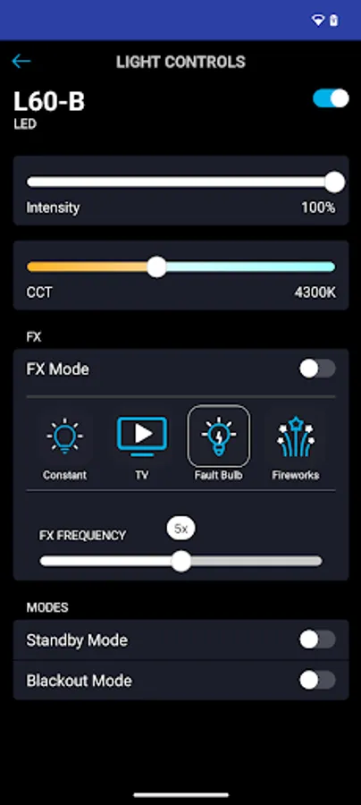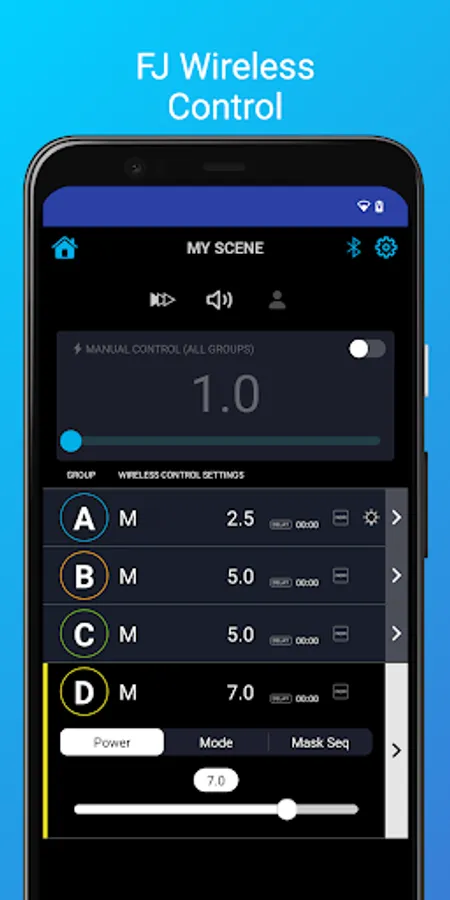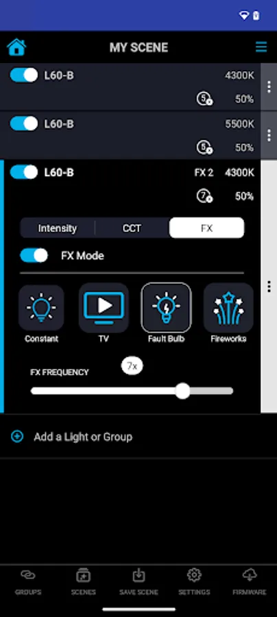 The StudioLink App allows you to create and save up to 99 of your favorite reoccurring lighting scenario settings by saving them as Scenes. This is available in the FJ and LED sections of the app.