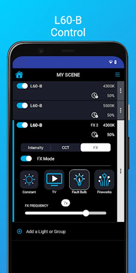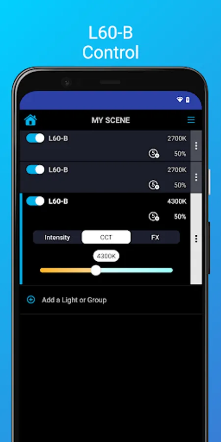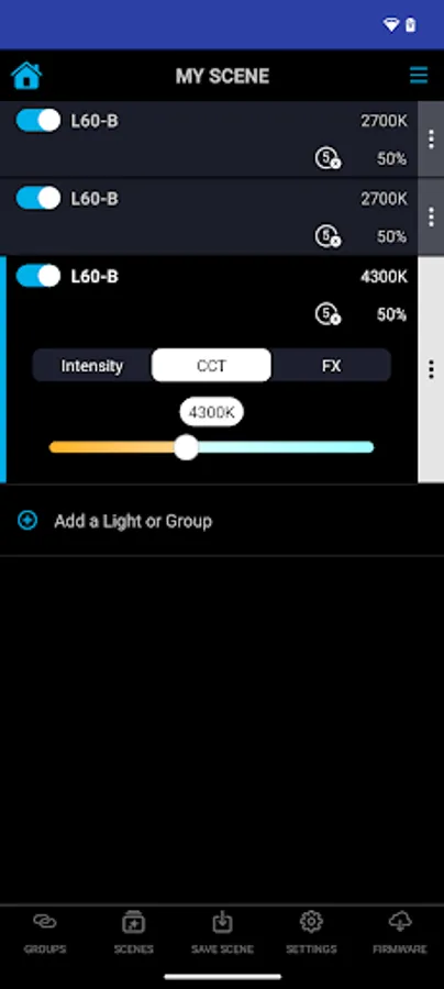 The StudioLink app allows you to create up to 10 groups when connected to an L60-B. Allowing users the ability to create several groups with individualized control. The app expands the FJ Wireless grouping functionality by increasing the number of groups available from 6 to 16. Groups are color-coded for quick recognition. Connect up to 99 FJ Wireless lights!