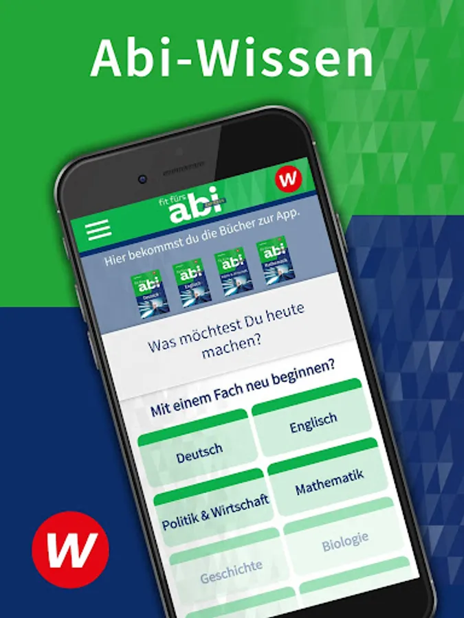 The free training app "Fit-fürs-Abi-Express" from Westermann offers you express training for 10 Abitur subjects: biology, chemistry, German, English, geography, history, mathematics, music, physics as well as politics and economics.