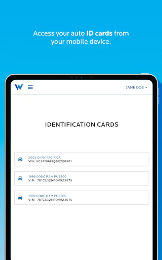 • A digital copy of the ID card for each vehicle on your personal auto policy (available by signing in with your MyAccount profile)