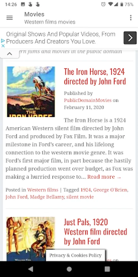 Public Domain Westerns Movies App free. Now with Chromecast support!!! Watch it on your TV!!