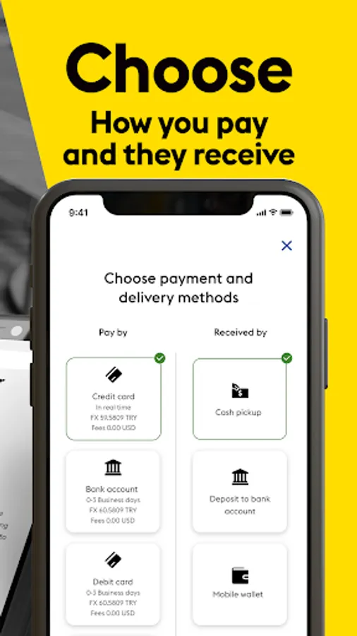 Western Union offers all of the tools you need to guarantee a reliable transfer. It is very easy to use: with just a few taps on the screen you can send money directly to the recipient's bank account or to one of our hundreds of thousands of locations around the world!